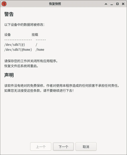 当然,你也可以使用timeshift命令来恢复快照